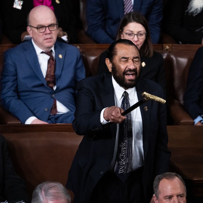 Congress Targets Rep. Al Green for Second Removal After Disrupting Trump’s Address Stella Green, February 25, 2026 Republicans have once again introduced a censure resolution against Representative Al Green of Texas following his removal from the House chamber for interrupting President Donald Trump’s State of the Union address to a joint session of Congress on Tuesday evening. Rep. Mike Rulli of Ohio stated, “Al Green is a disgrace to the United States Congress. I am immediately introducing a resolution to censure him for his disgusting outbursts and repeated violations of House Rules.” Green was ejected after holding up a banner reading “BLACK PEOPLE AREN’T APES!” as Trump entered the chamber. He remained standing and displayed the sign while Trump began speaking before being escorted out by the Sergeant at Arms. This incident marks the second consecutive year in which Green has been removed from the chamber during a presidential address. Green was previously censured in a 224–198 House vote last year after repeatedly interrupting Trump during a joint session and brandishing his cane. That prior incident also resulted in his removal from the chamber. The latest censure resolution could be voted on by the House in coming days as lawmakers determine whether Green’s conduct warrants additional disciplinary action. Speaker Mike Johnson of Louisiana declined to commit to holding a vote on the censure resolution, stating that “Al Green was removed pretty quickly. I don’t know if censure is going to be appropriate.” Johnson added: “I’ll let our colleagues decide that.” Politics